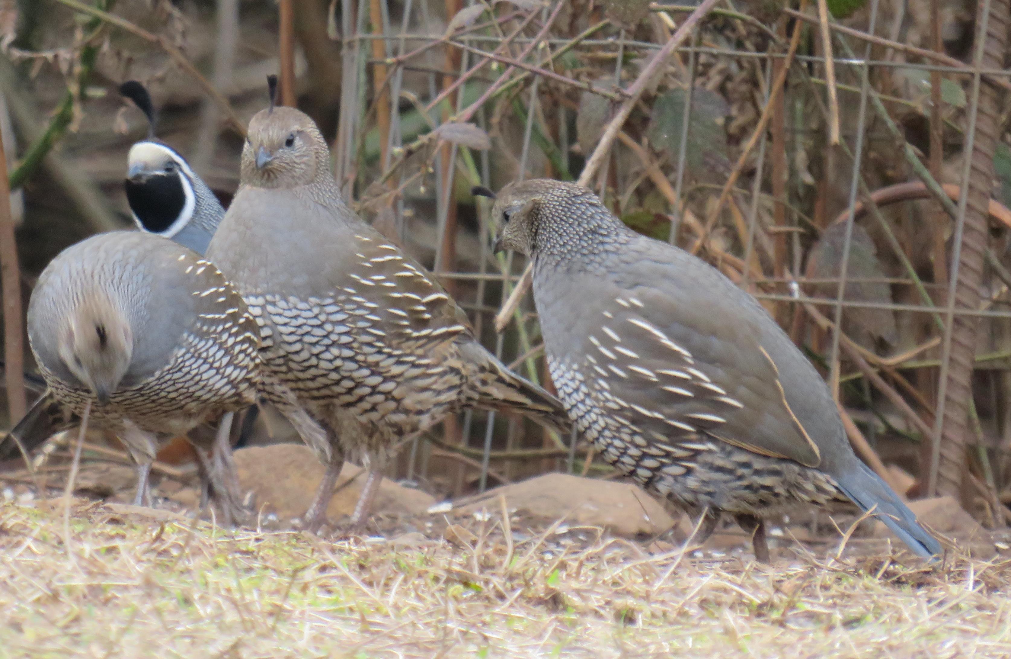 A small covey of 10-11 California Quail comes by a couple of times each day.